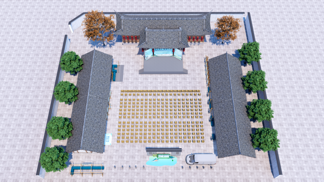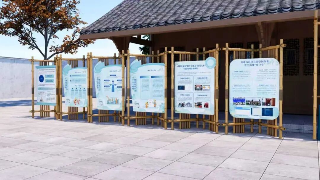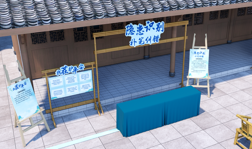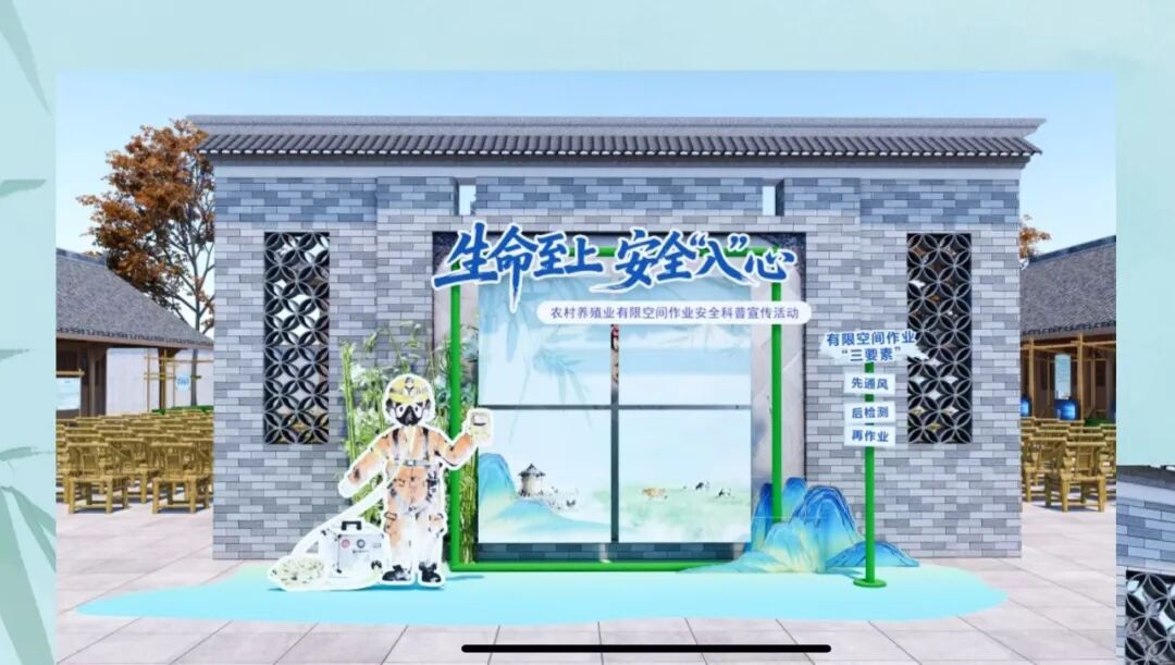 在舞台设计方面,四川亿和设计团队紧扣“安全科普”核心主题,结合农村养殖场景特点打造沉浸式视觉空间。舞台以警示蓝为主色调,强化安全认知;背景设计巧妙融入乡土风貌与人文元素,营造亲切氛围。